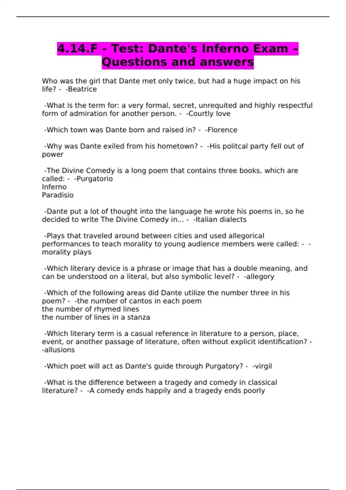 4.14.F - Test: Dante's Inferno Exam –