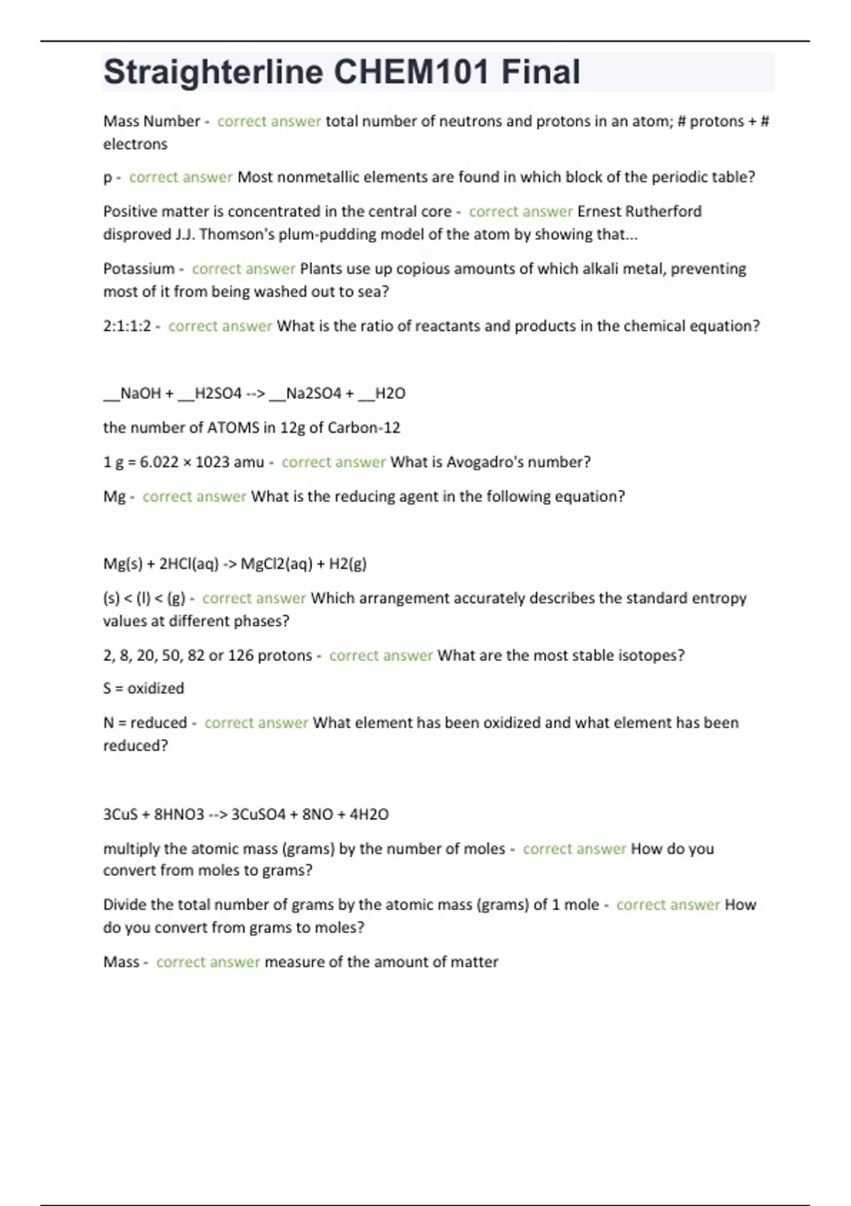 Divide the total number of grams by the atomic mass (grams) of 1 mole - correct answer How