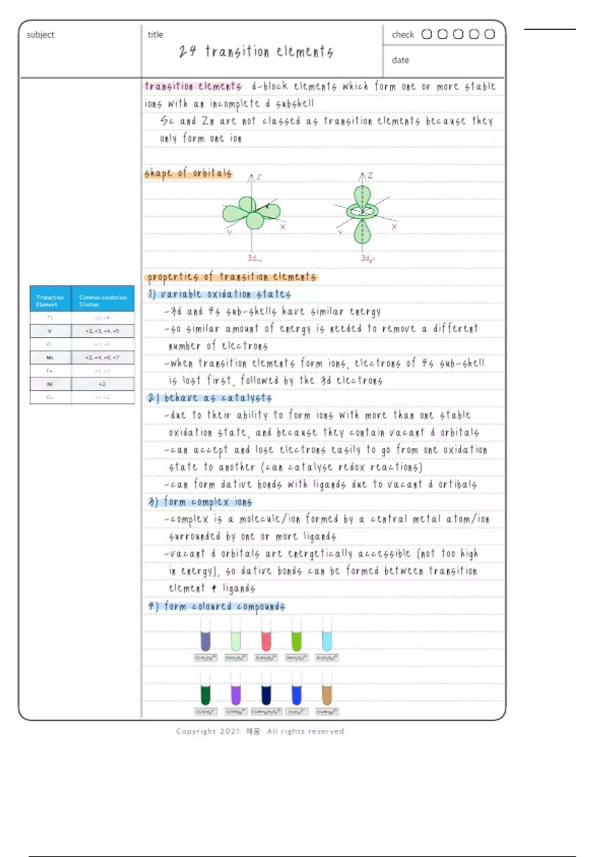A Level Chemistry Chapter 24 Transition Elements Detailed Summary Note