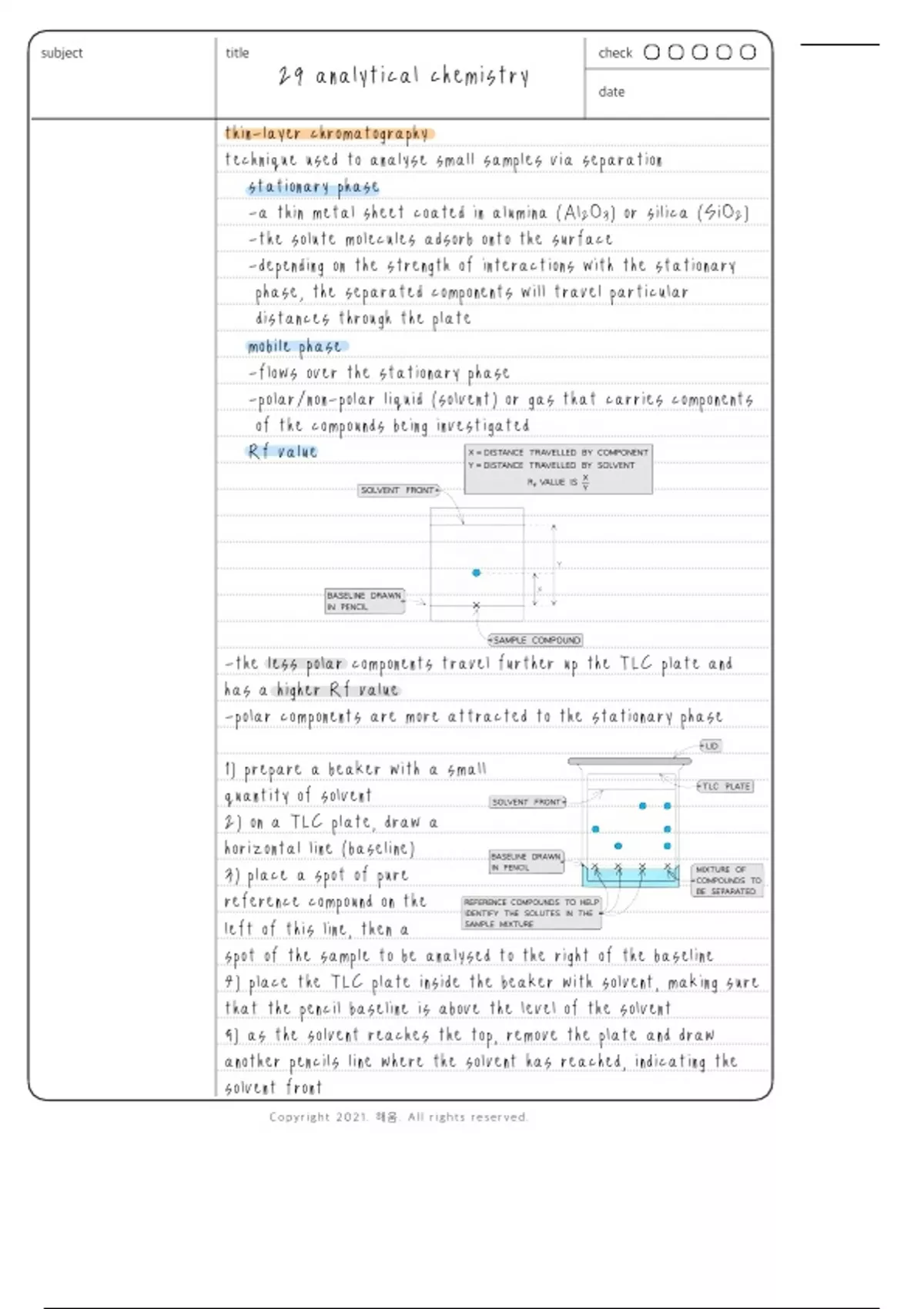 A Level Chemistry Chapter 29 Analytical Chemistry Detailed Summary Note including the topics - chromatography, Rf value, retention time, carbon-13 NMR spectroscopy, and proton NMR spectroscopy