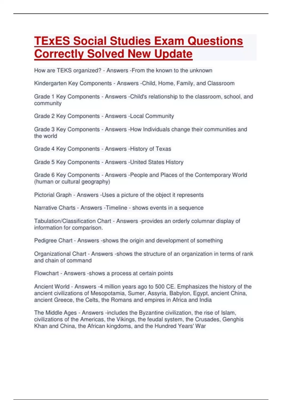 Grade 4 Key Components - Answers -History of Texas