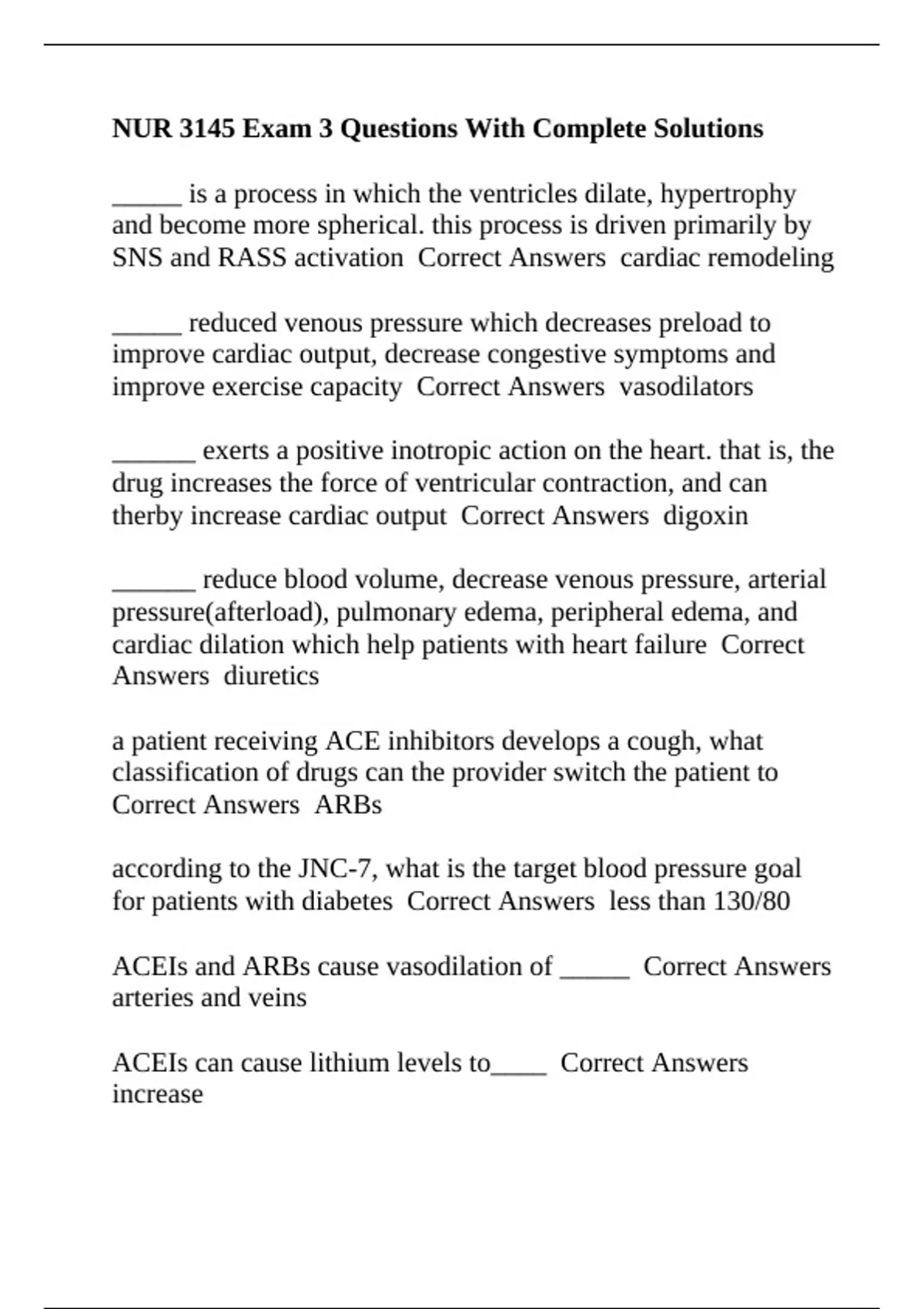 Correct Answers ARBs