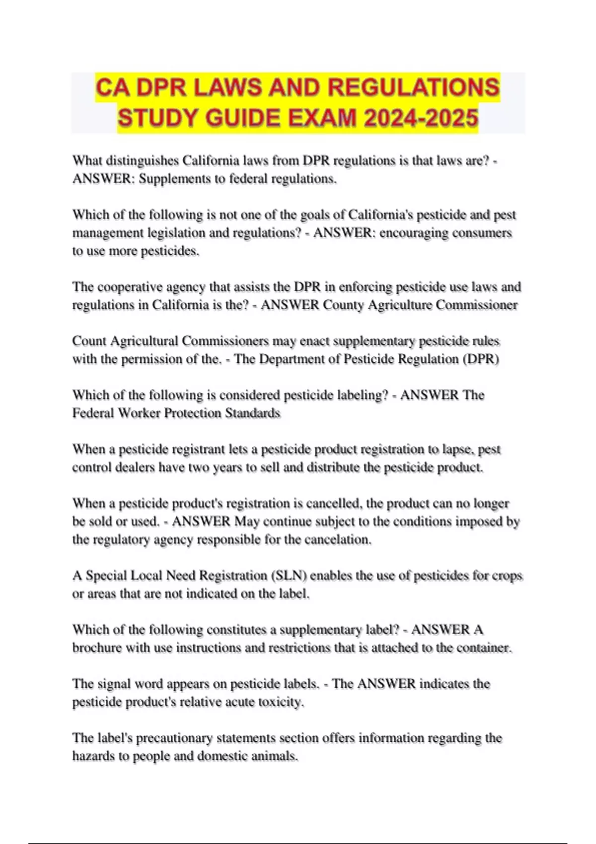 The signal word appears on pesticide labels. - The ANSWER indicates the