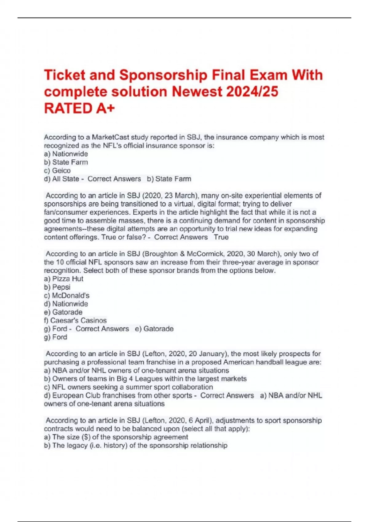 Ticket and Sponsorship Final Exam With complete solution Newest 2024/25 RATED A+