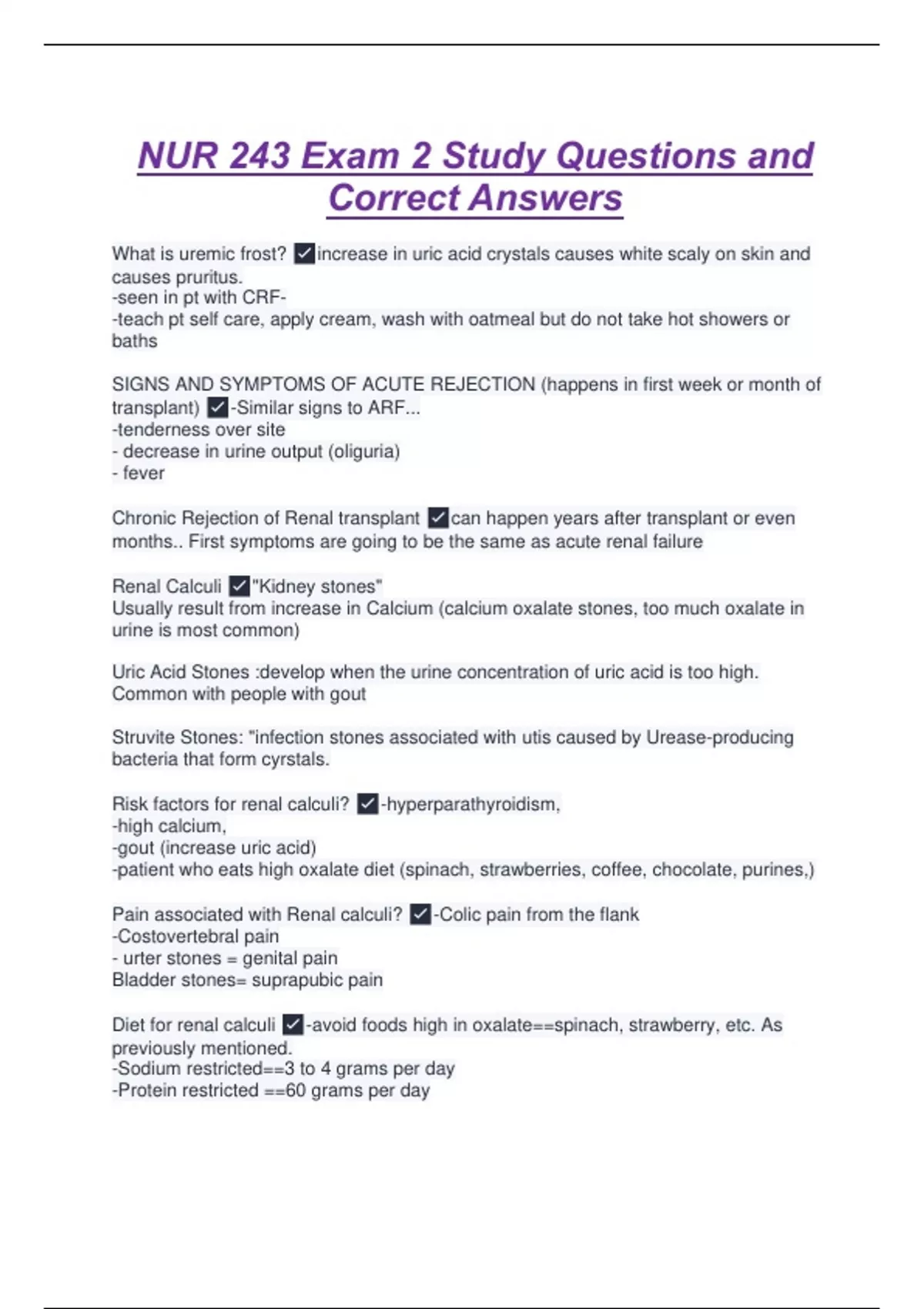 Nursing Management to prevent renal disease? ✅- encourage fluid intake