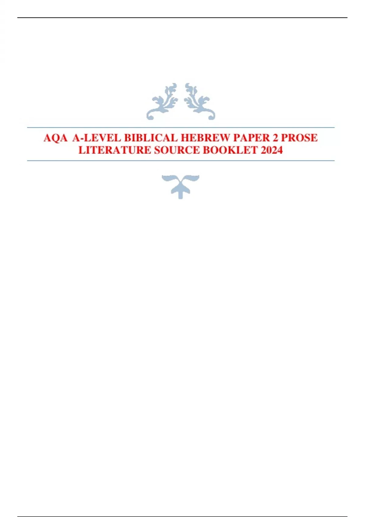 AQA A-LEVEL BIBLICAL HEBREW PAPER 2 PROSE