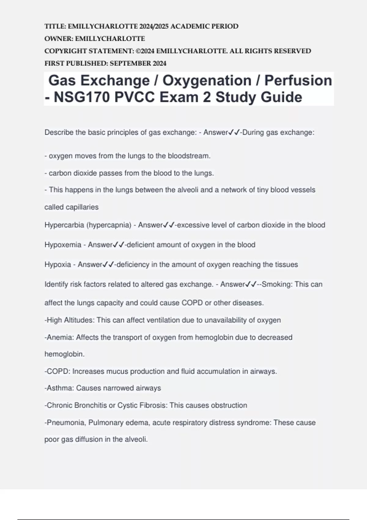 Identify risk factors related to altered gas exchange. - Answer✔️✔️--Smoking: This can