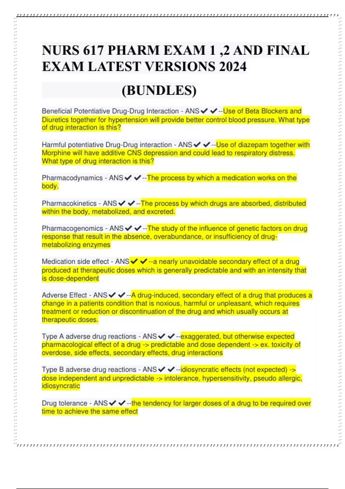Pharmacokinetics - ANS✔✔--The process by which drugs are absorbed, distributed