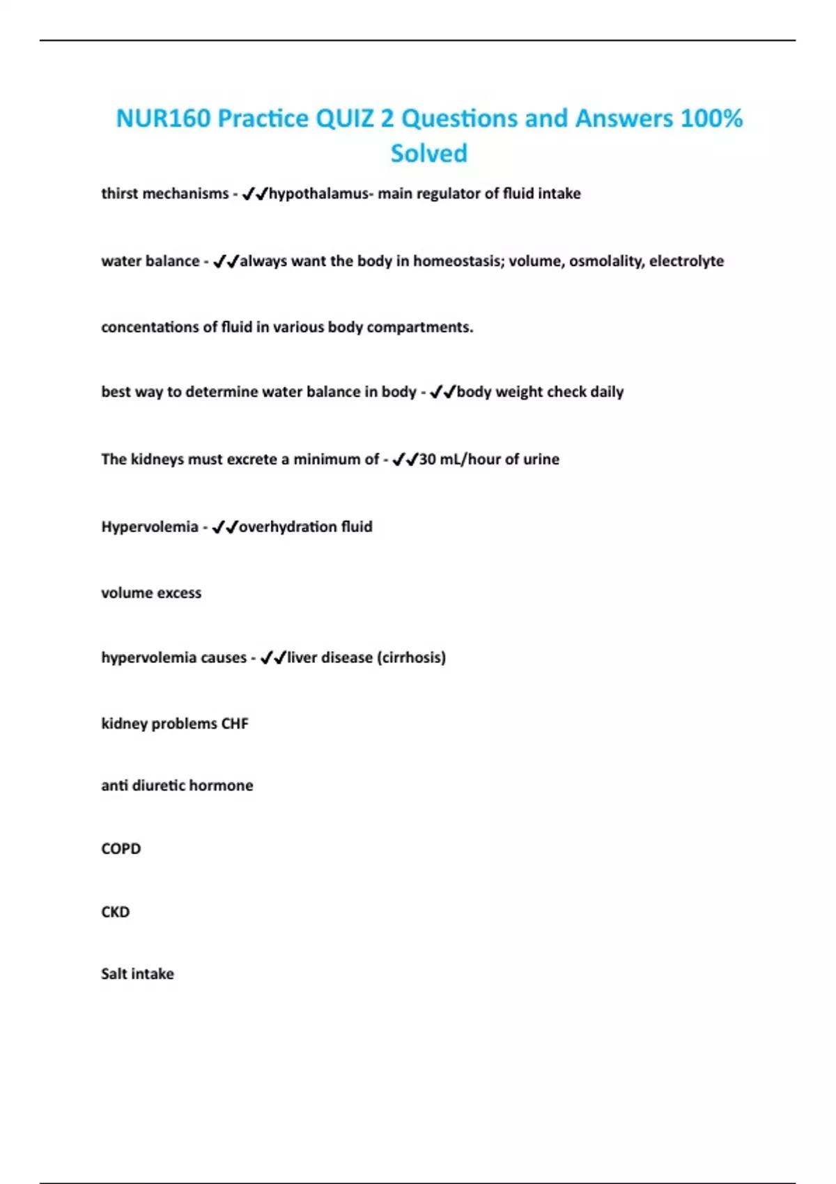 NUR160 Practice QUIZ 2 Questions and Answers 100%