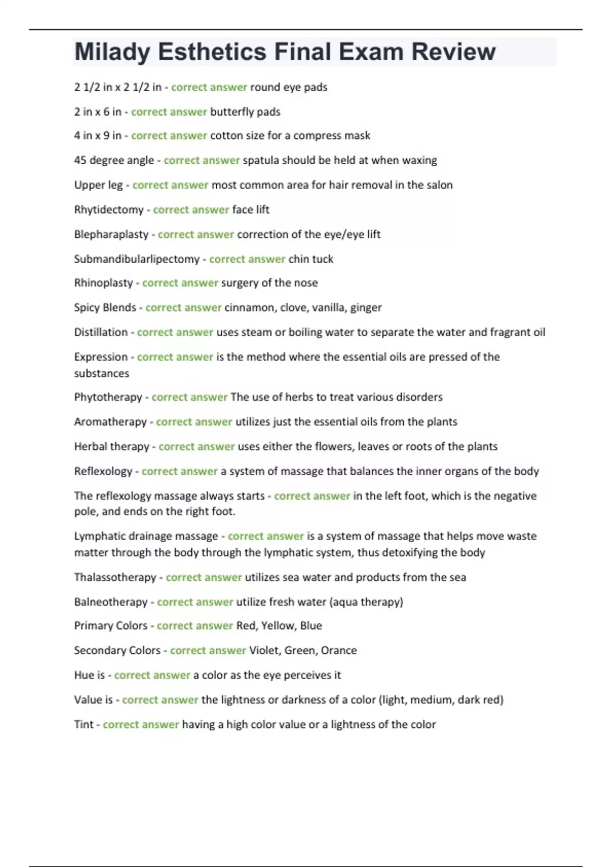 , Milady Esthetics Final Exam Review