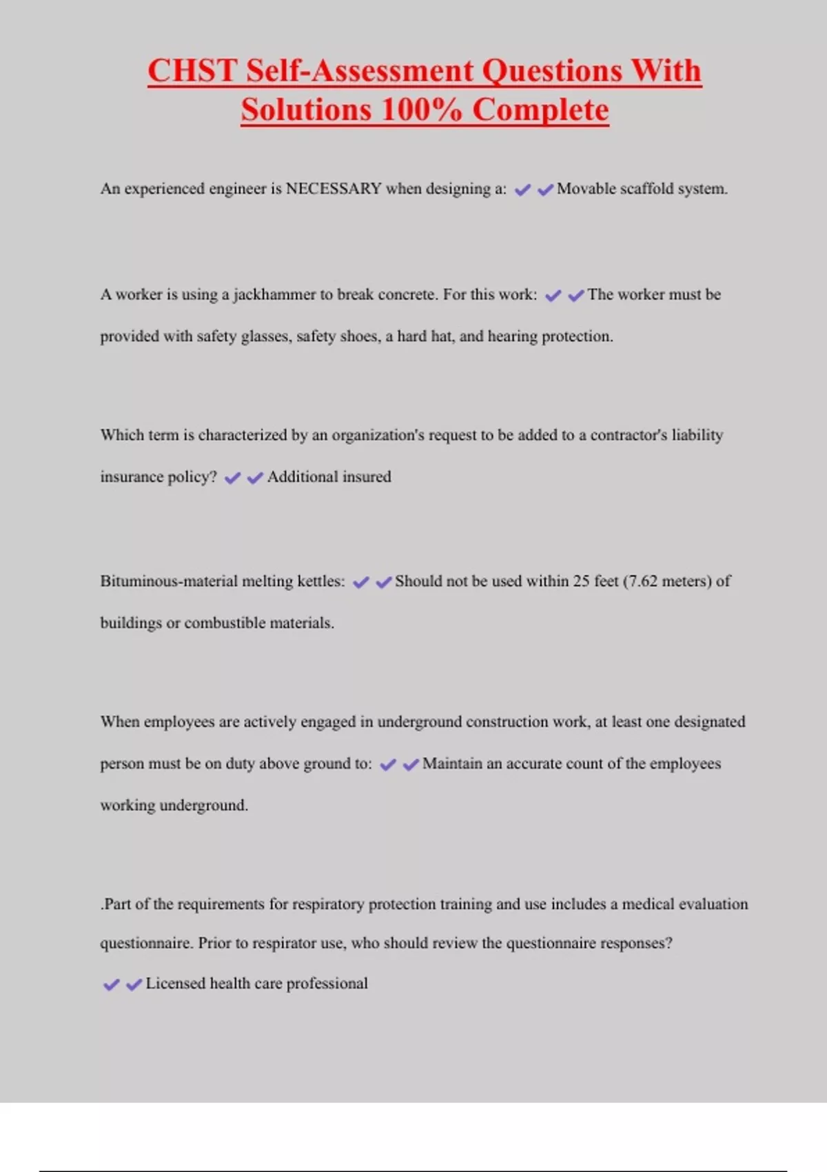 , CHST Self-Assessment Questions With