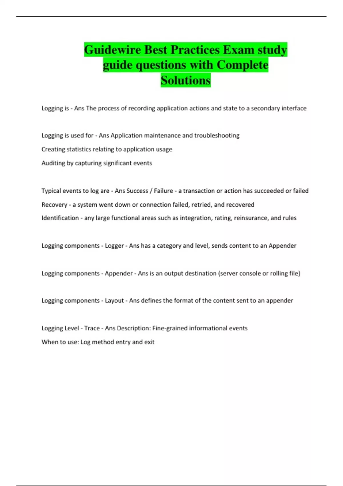 Guidewire Best Practices Exam study guide questions with Complete Solutions