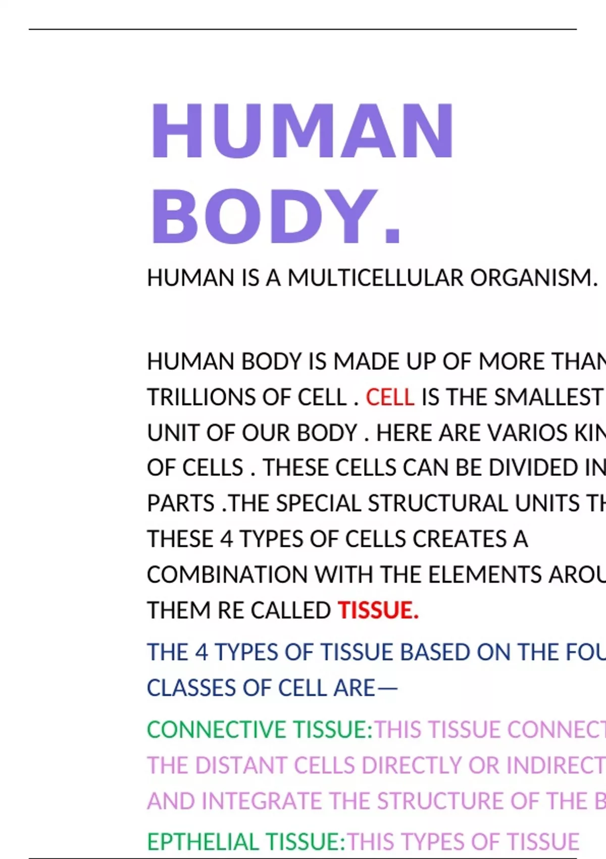 HUMAN IS A MULTICELLULAR ORGANISM.
