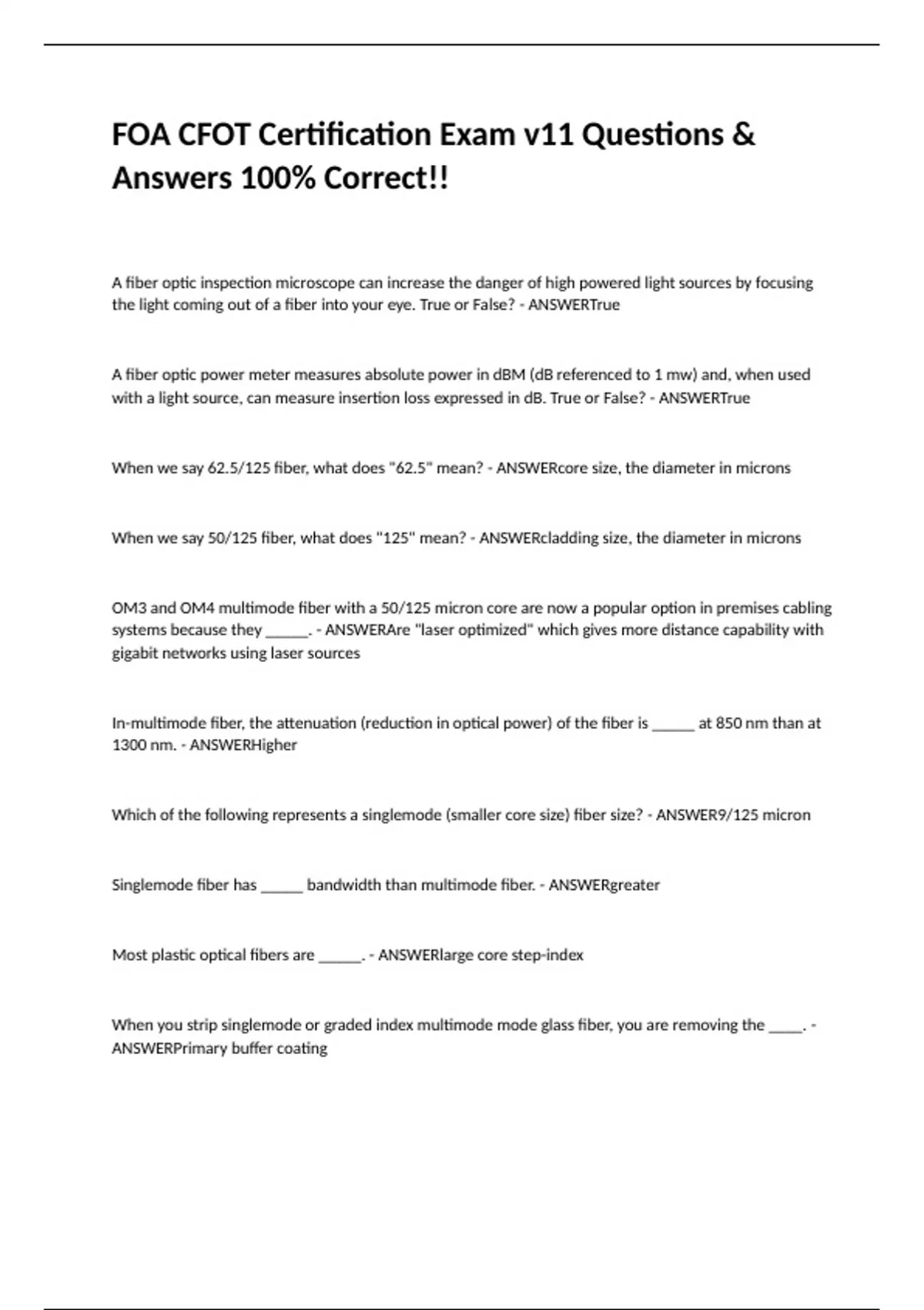 Most plastic optical fibers are _____. - ANSWERlarge core step-index