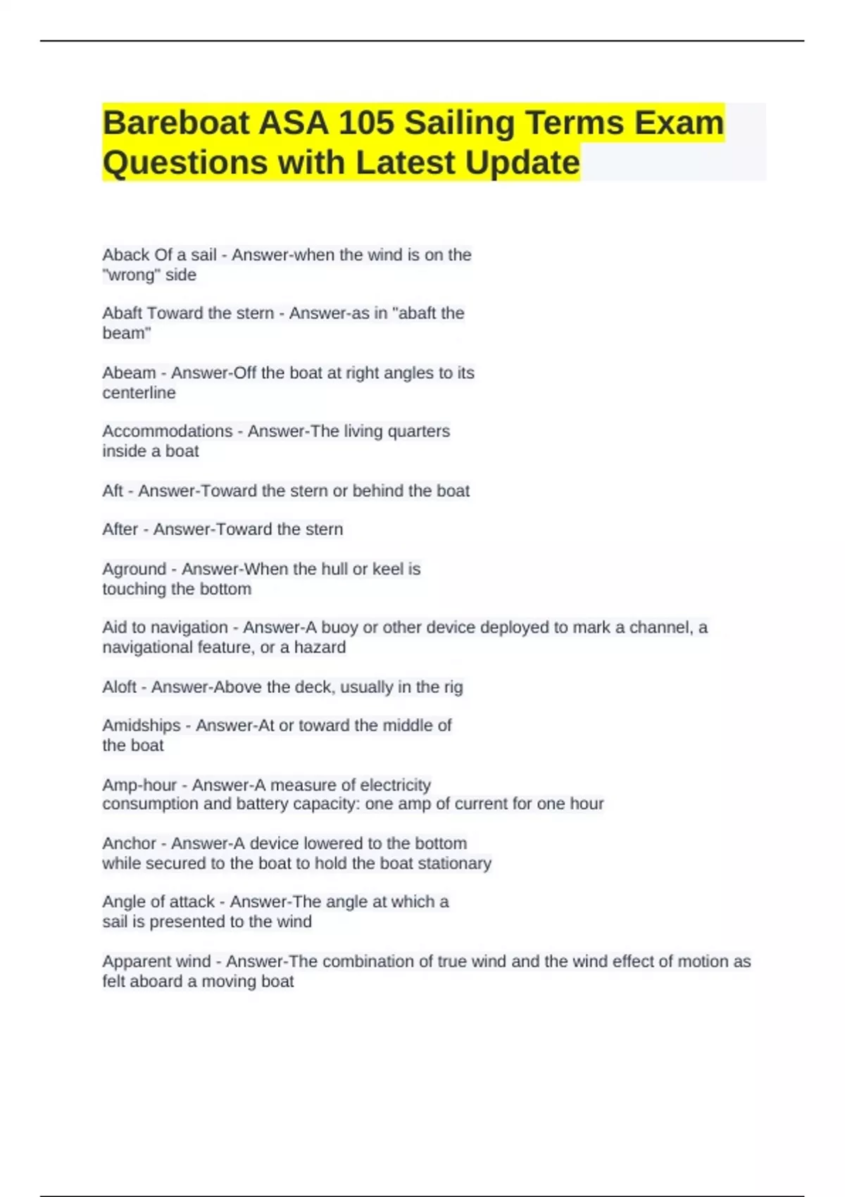 Beam reach - Answer-The point of sail where the