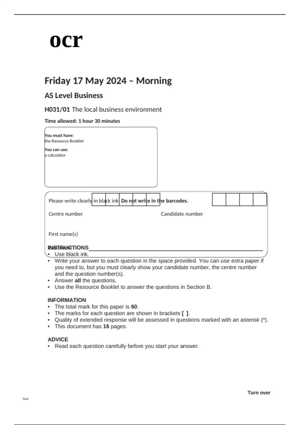 • Quality of extended response will be assessed in questions marked with an asterisk (*).