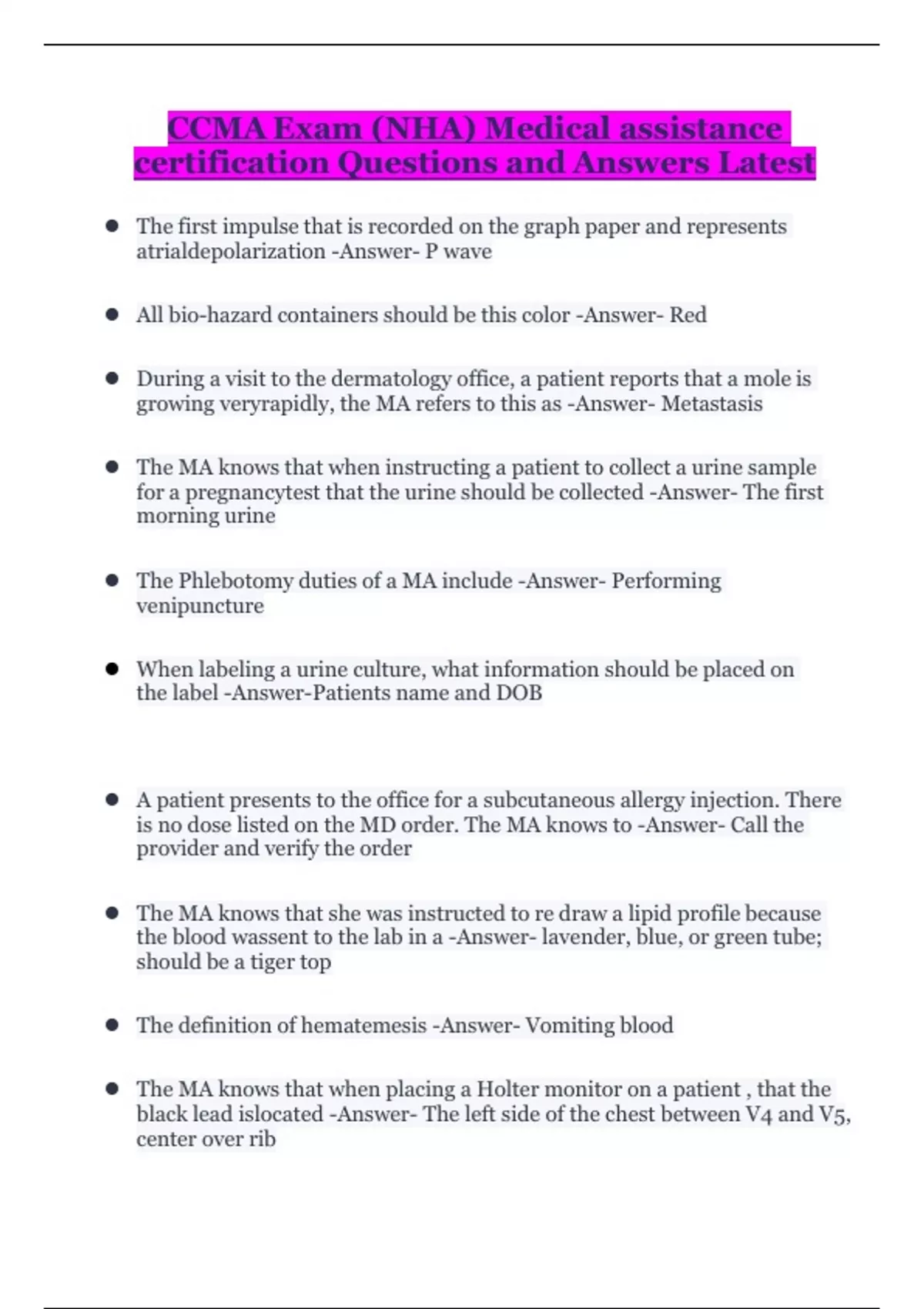 , When V-fib is noted in an EKG the MA knows to -Answer- Call for help