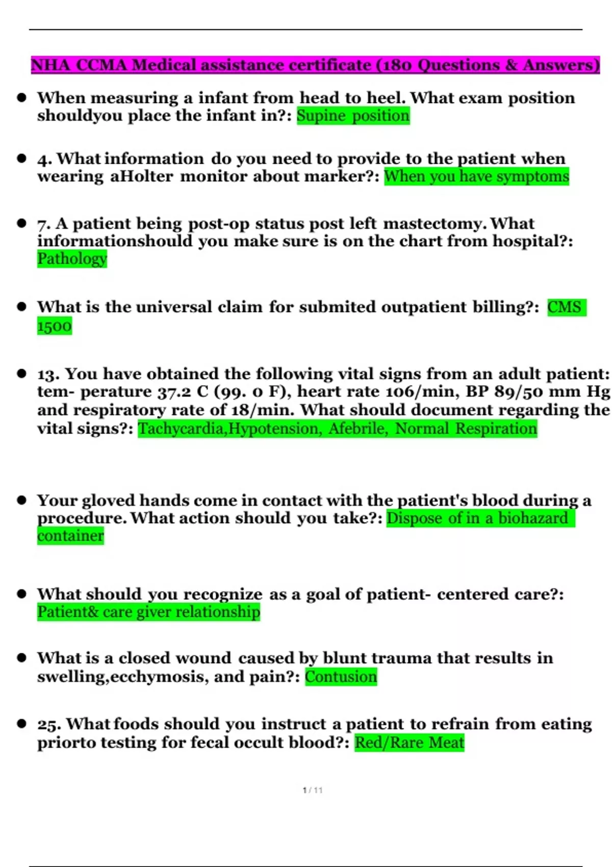 NHA CCMA Medical assistance certificate (180 Questions & Answers)