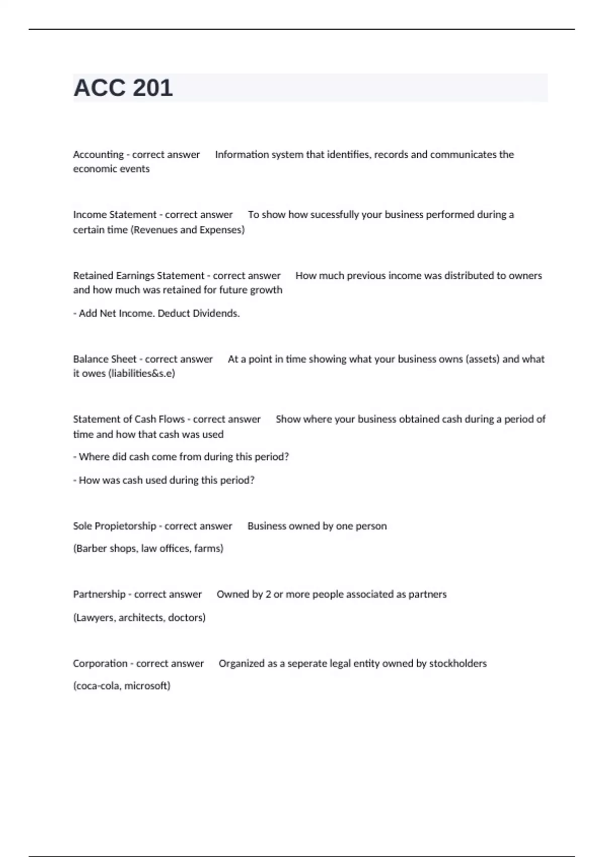 Sole Propietorship - correct answer Business owned by one person