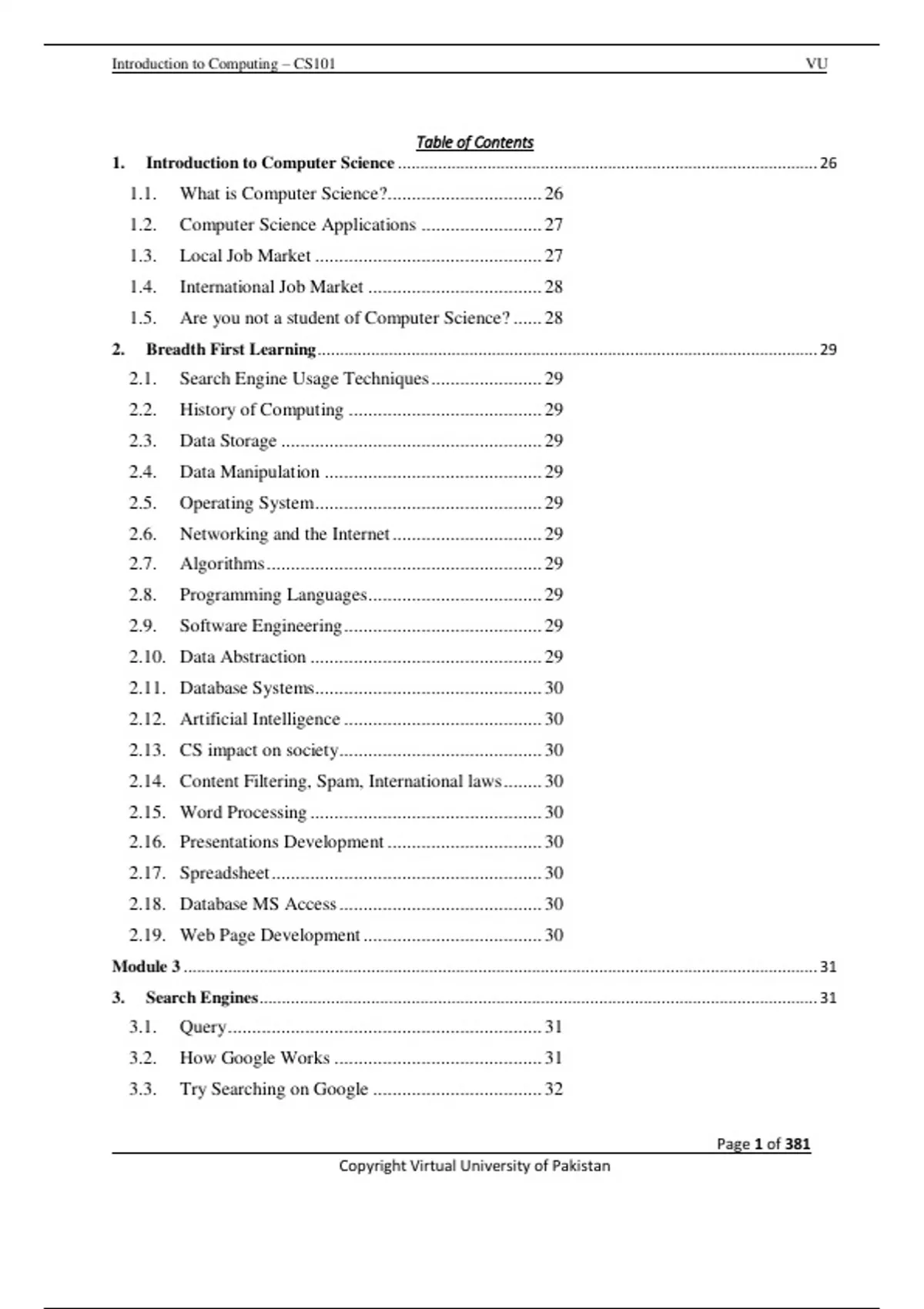 , Introduction to Computing – CS101 VU