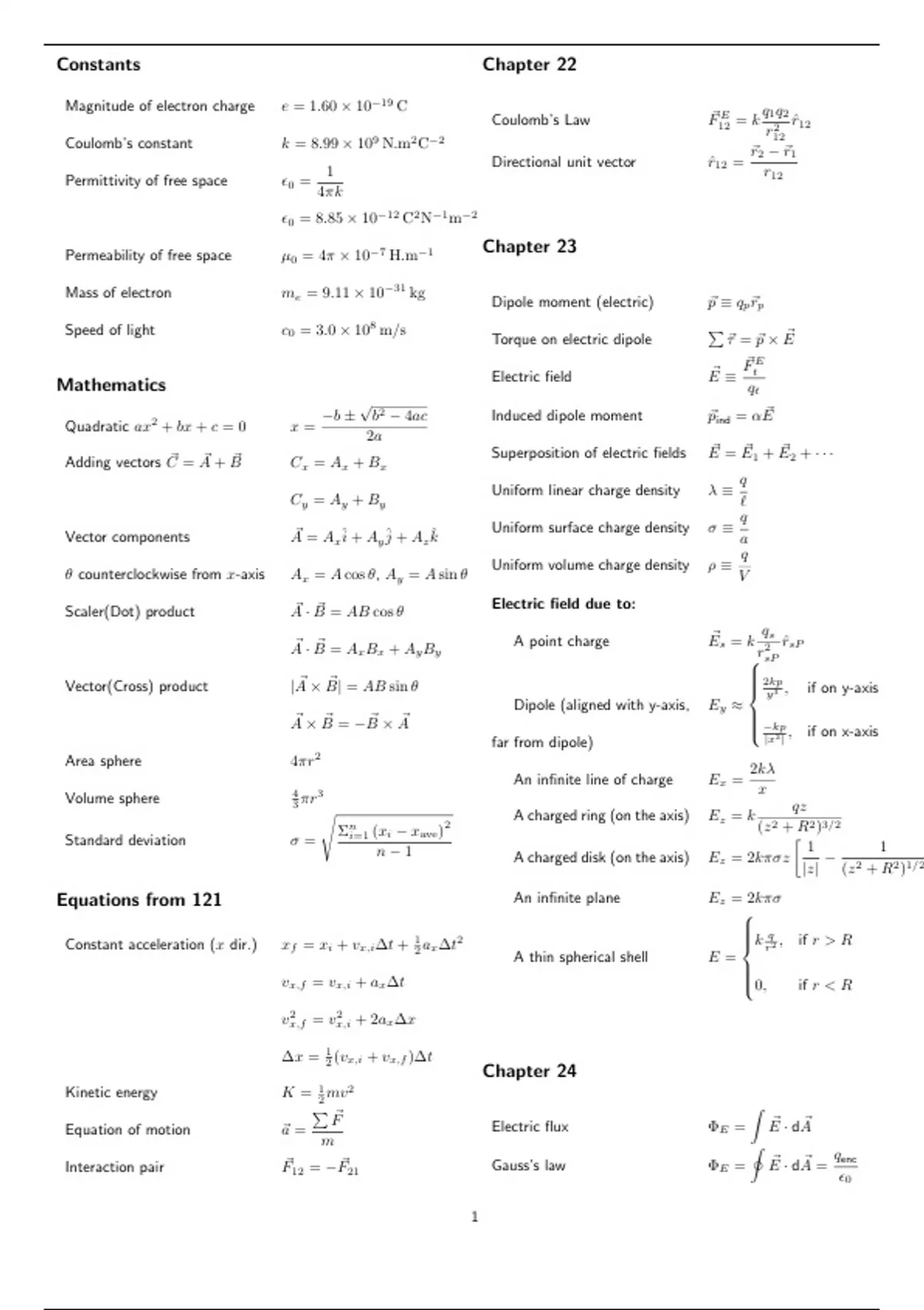 Equations from 121 An infinite plane Ez = 2k⇡
