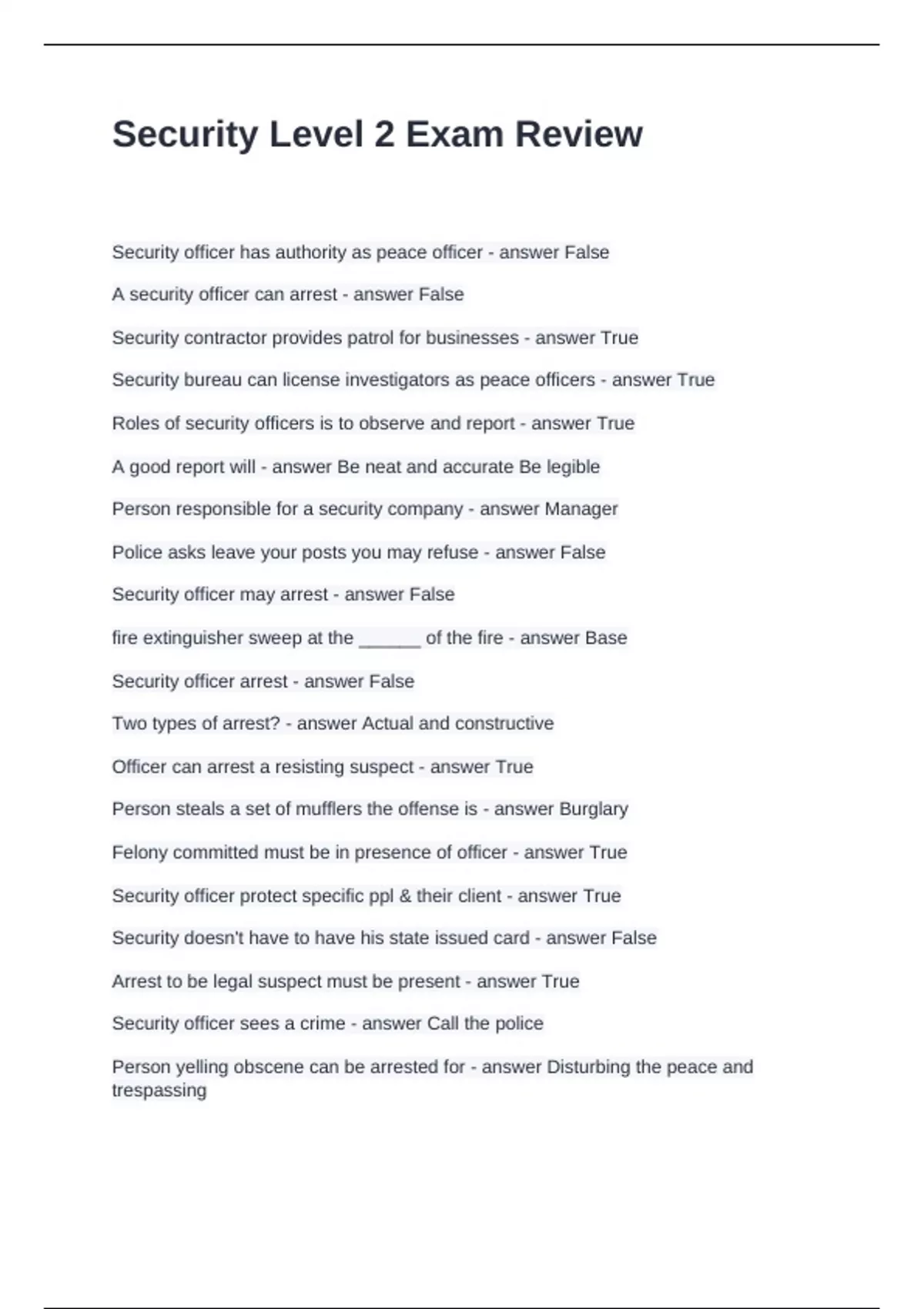 Security Level 2 Exam Review