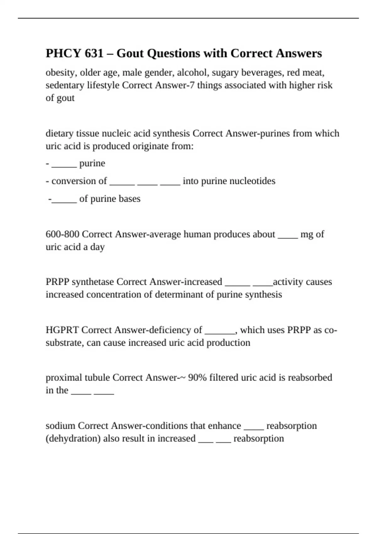 proximal tubule Correct Answer-~ 90% filtered uric acid is reabsorbed