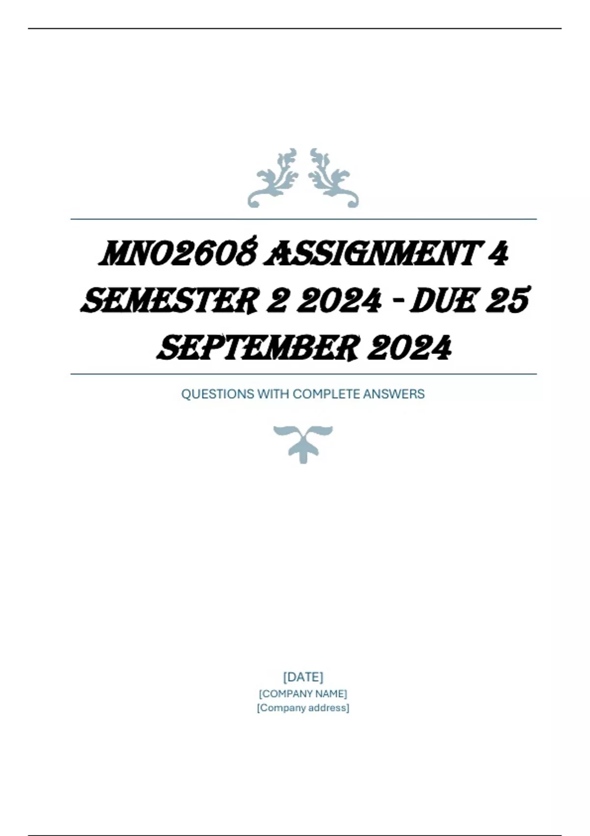 ,MNO2608 Assignment 4 Semester 2 2024 - DUE 25 September 2024