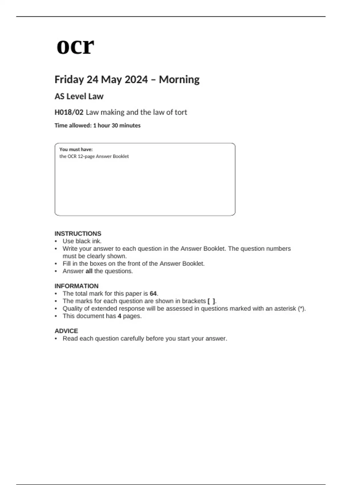 ocr AS Level Law (H018-02) Question Paper May2024.