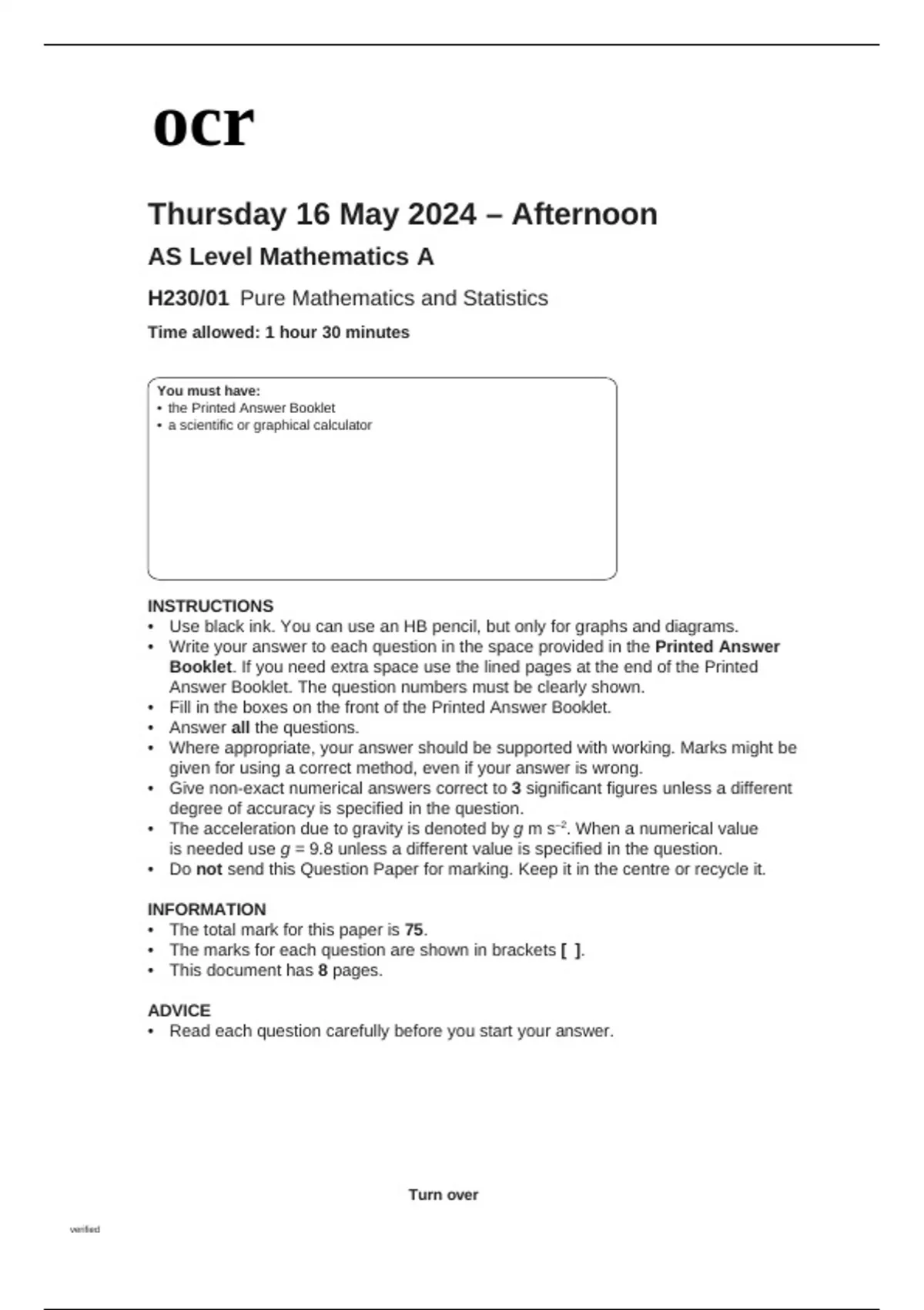 • Fill in the boxes on the front of the Printed Answer Booklet.