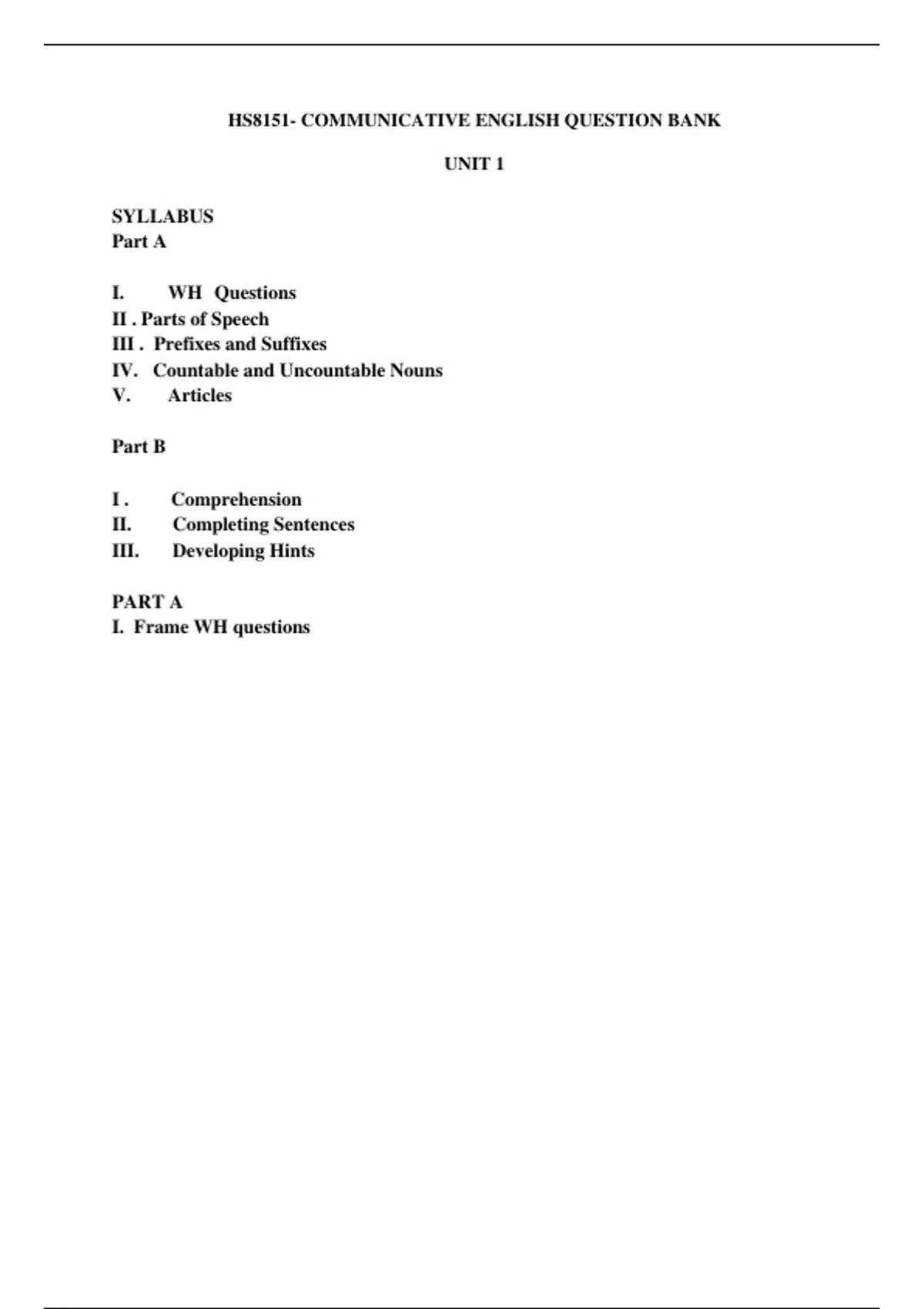 I. WH Questions