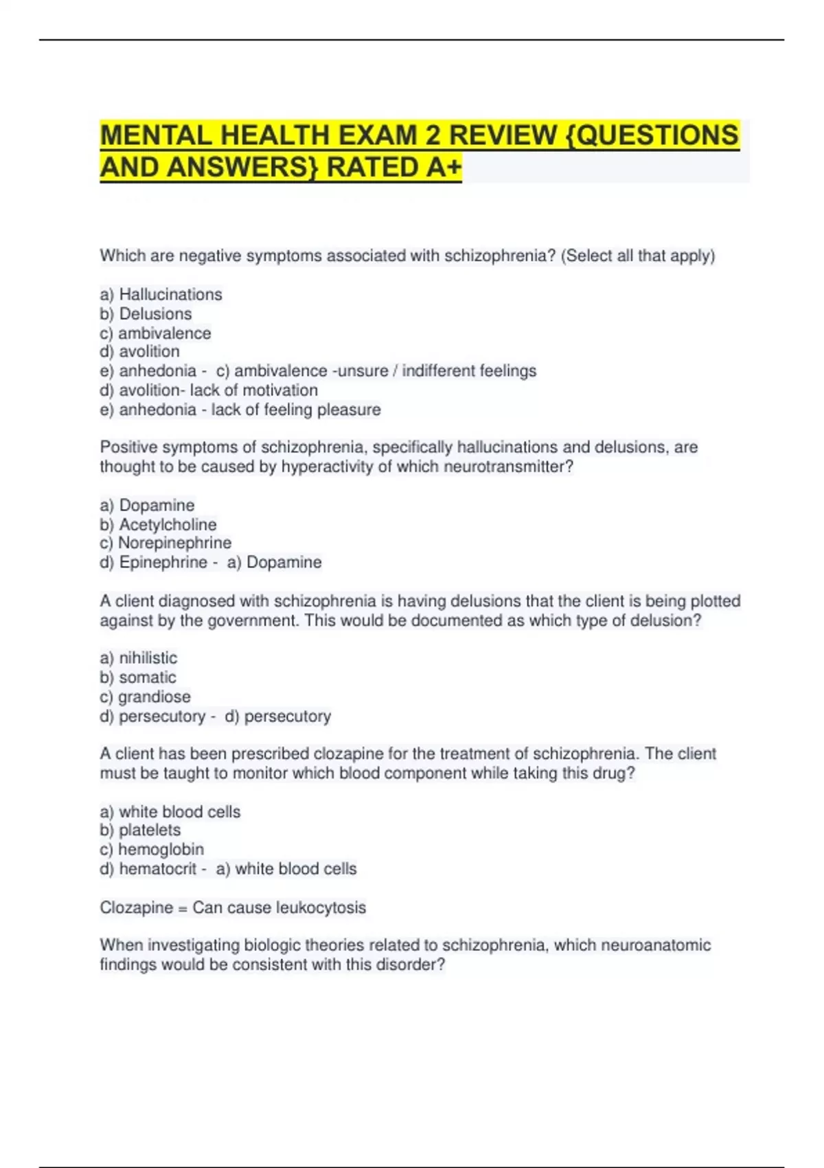 When cpreparing ca cclass cpresentation cabout cschizophrenia, cwhich cwould cthe cnurse cmost