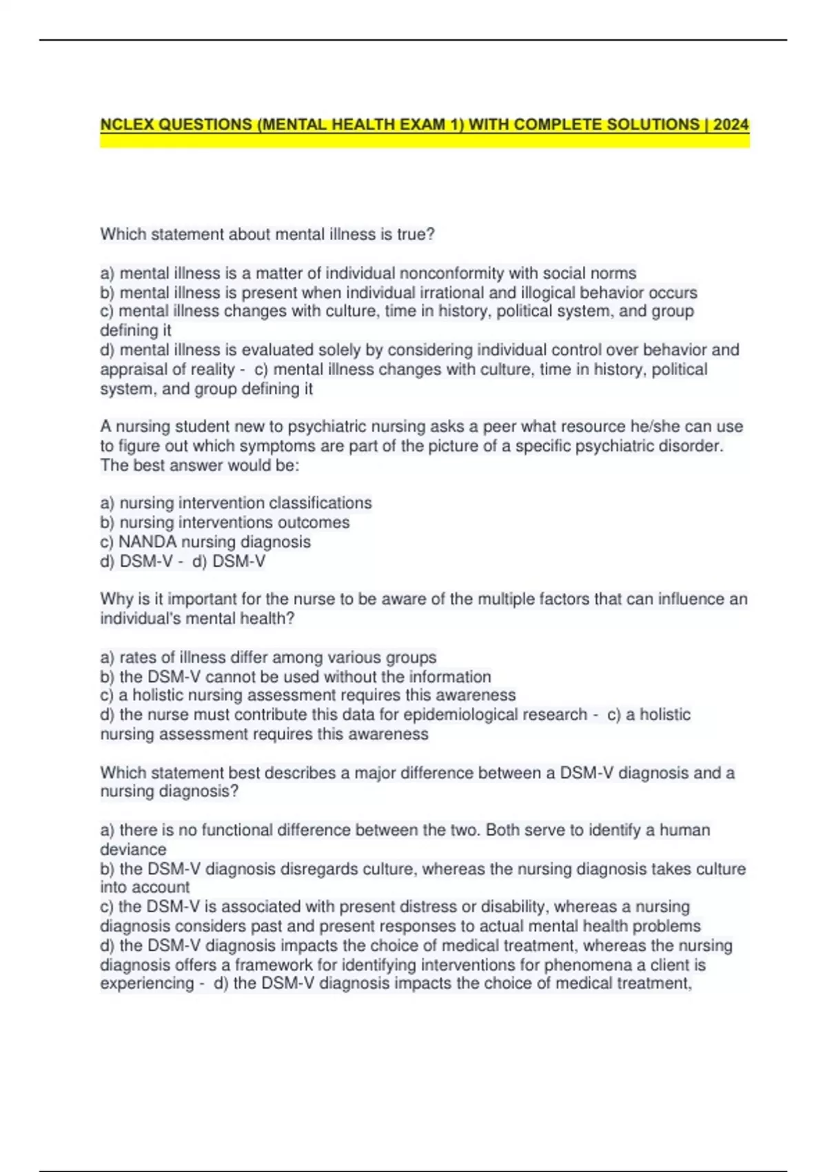 c) the DSM-V is associated with present distress or disability, whereas a nursing
