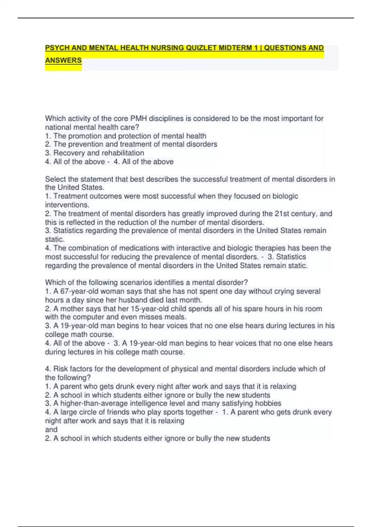 4. All of the above - 3. A 19-year-old man begins to hear voices that no one else hears