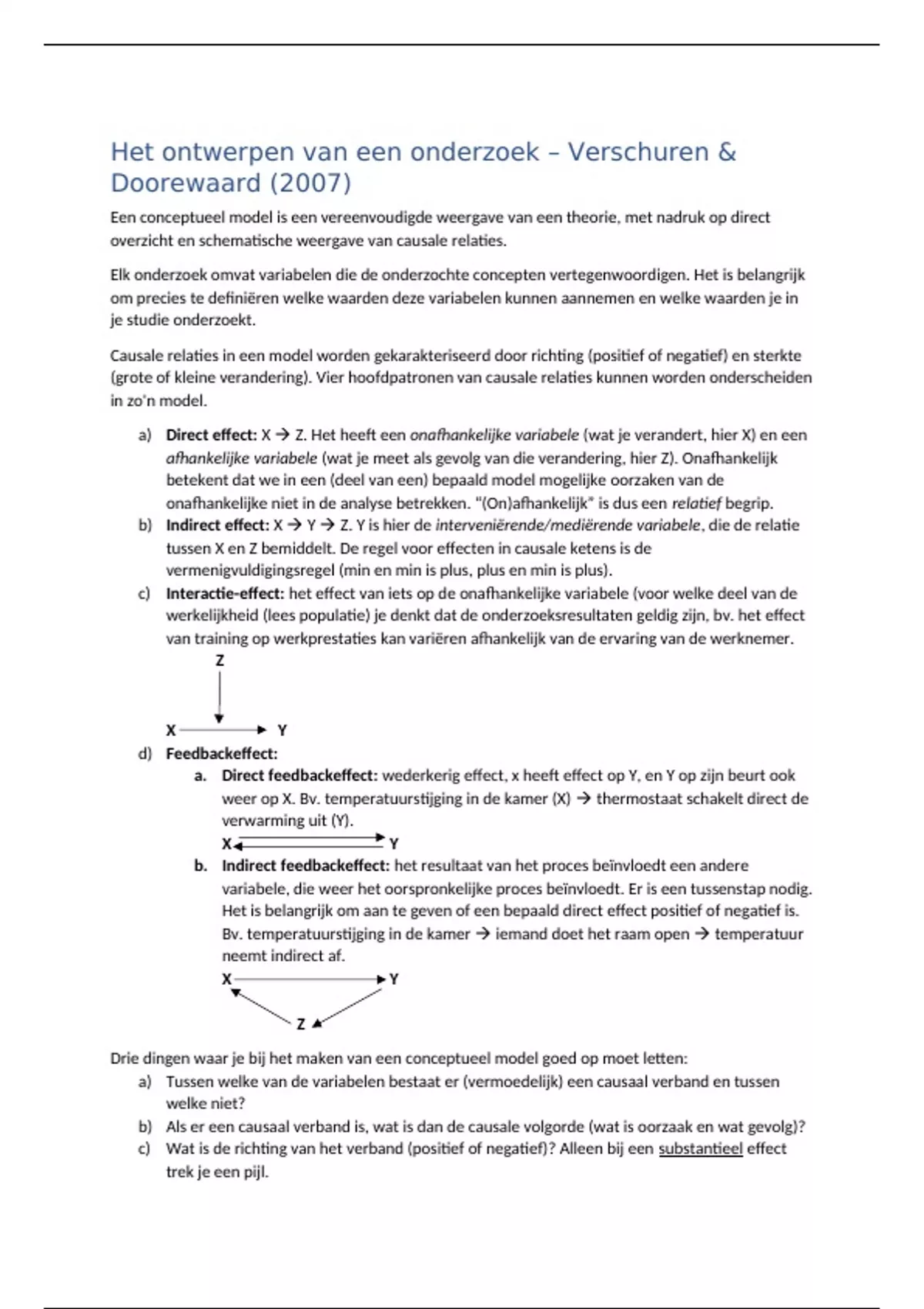 a) Direct effect: X  Z. Het heeft een onafhankelijke variabele (wat je verandert, hier X) en een