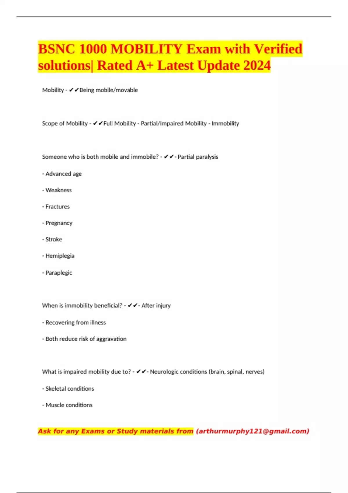 Scope of Mobility - ✔✔Full Mobility - Partial/Impaired Mobility - Immobility