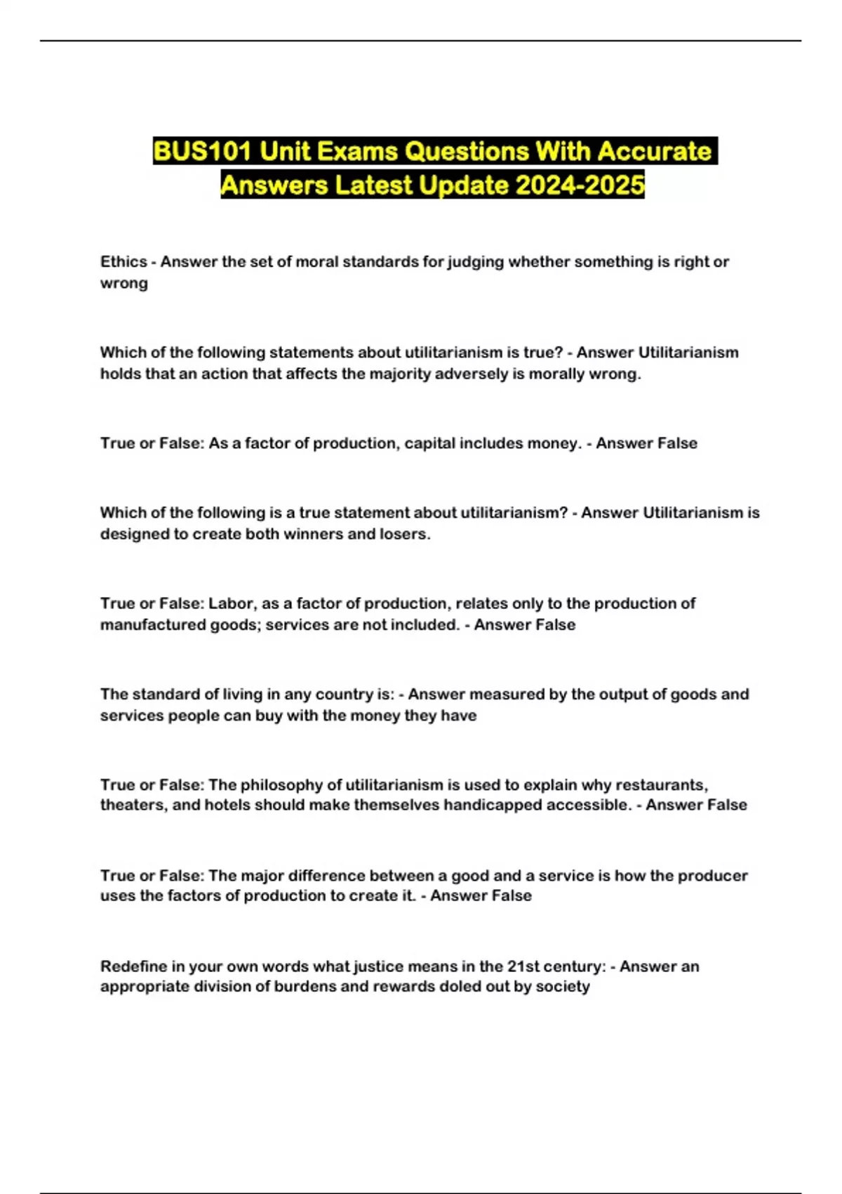 BUS101 Unit Exams Questions With Accurate Answers Latest Update ...