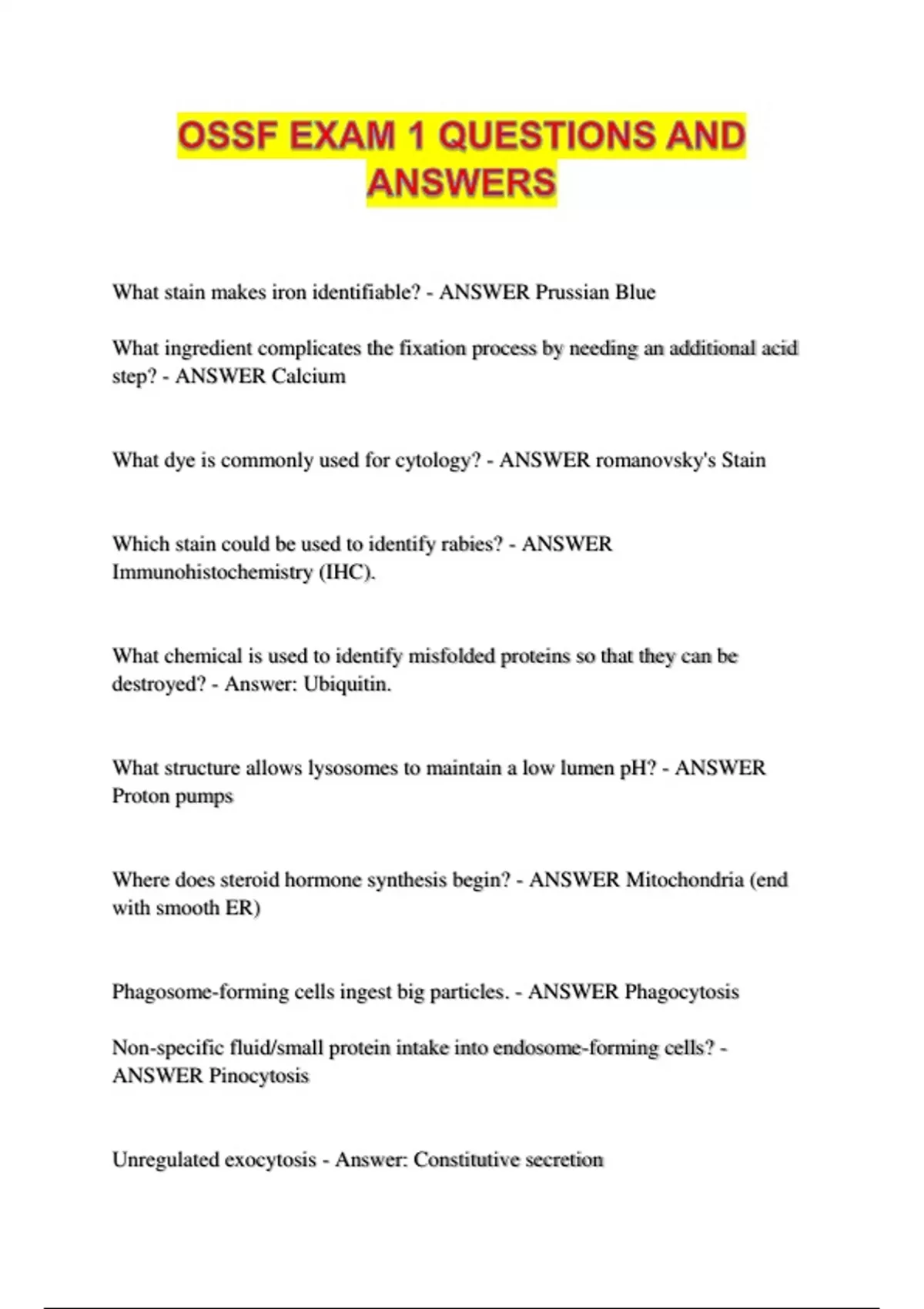 What stain makes iron identifiable? - ANSWER Prussian Blue