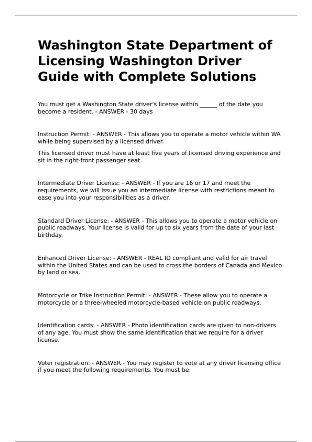 Instruction Permit: - ANSWER - This allows you to operate a motor vehicle within WA