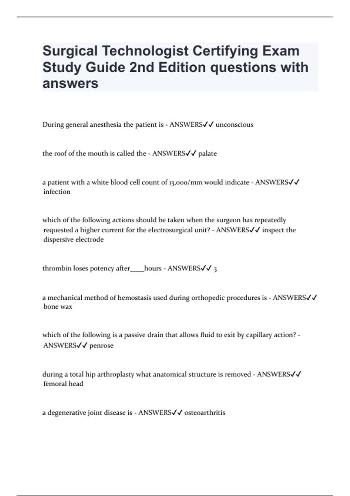 |requested |a |higher |current |for |the |electrosurgical |unit? |- |ANSWERS✔✔ |inspect |the