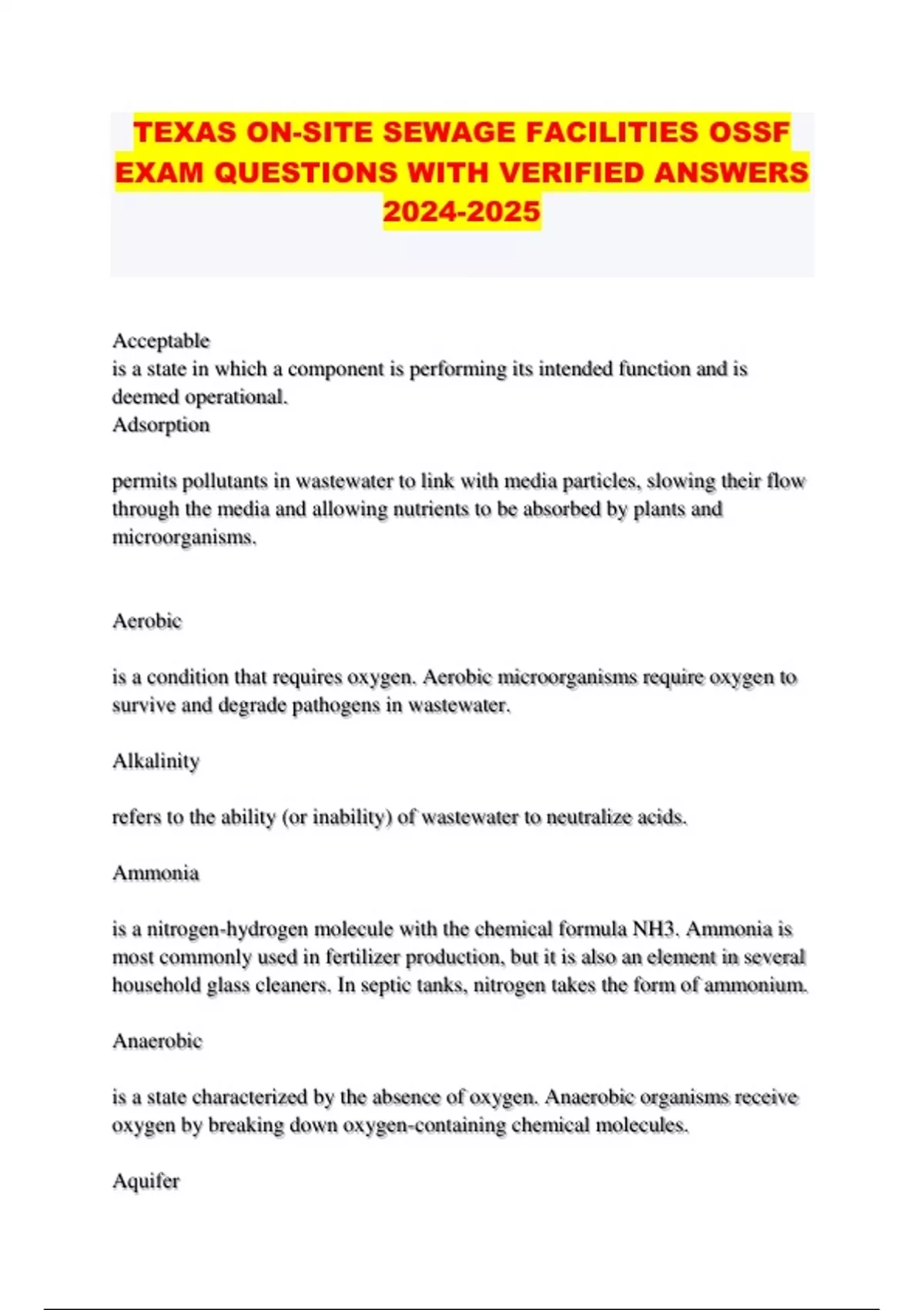 TEXAS ON-SITE SEWAGE FACILITIES OSSF
