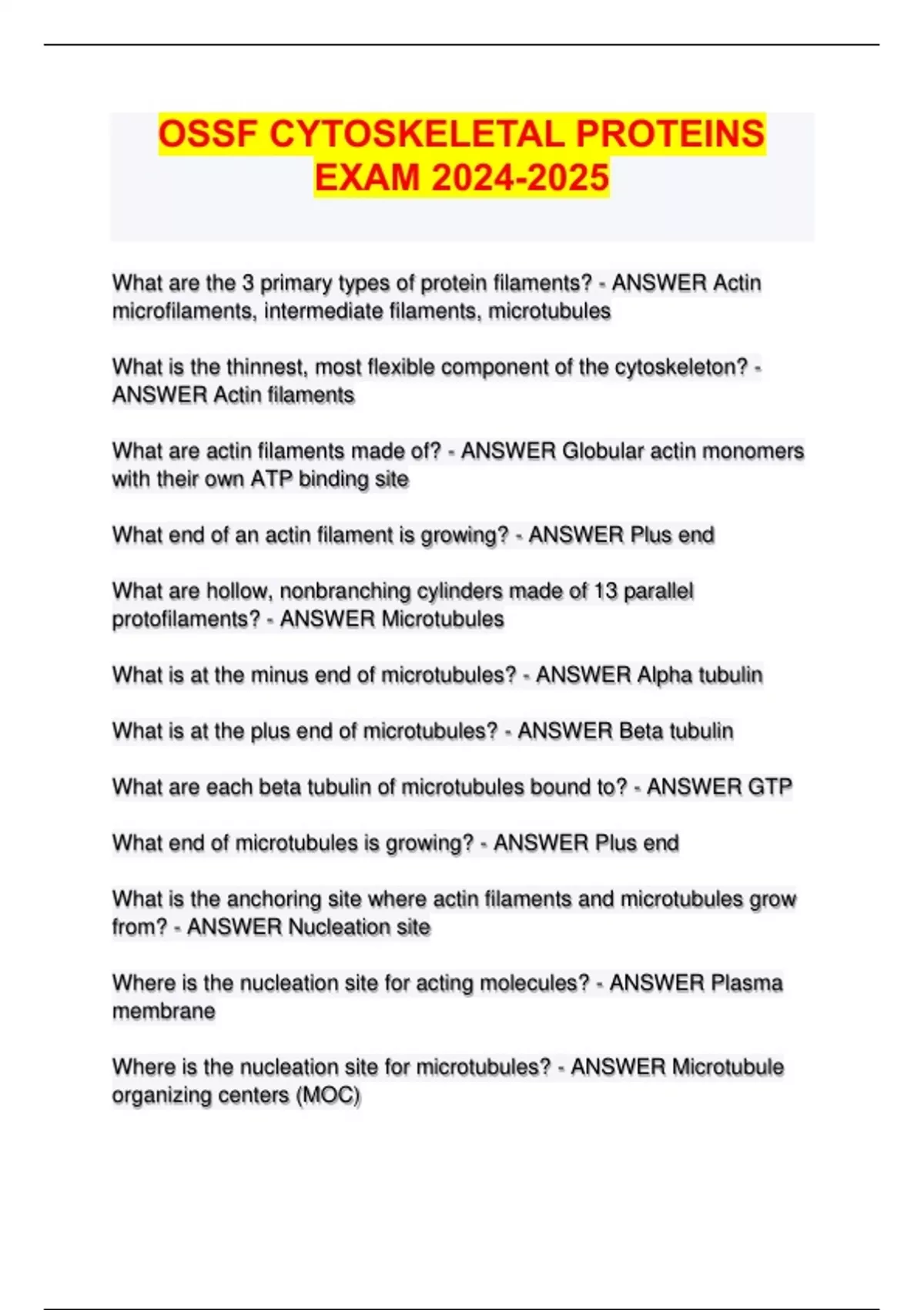 What is at the plus end of microtubules? - ANSWER Beta tubulin