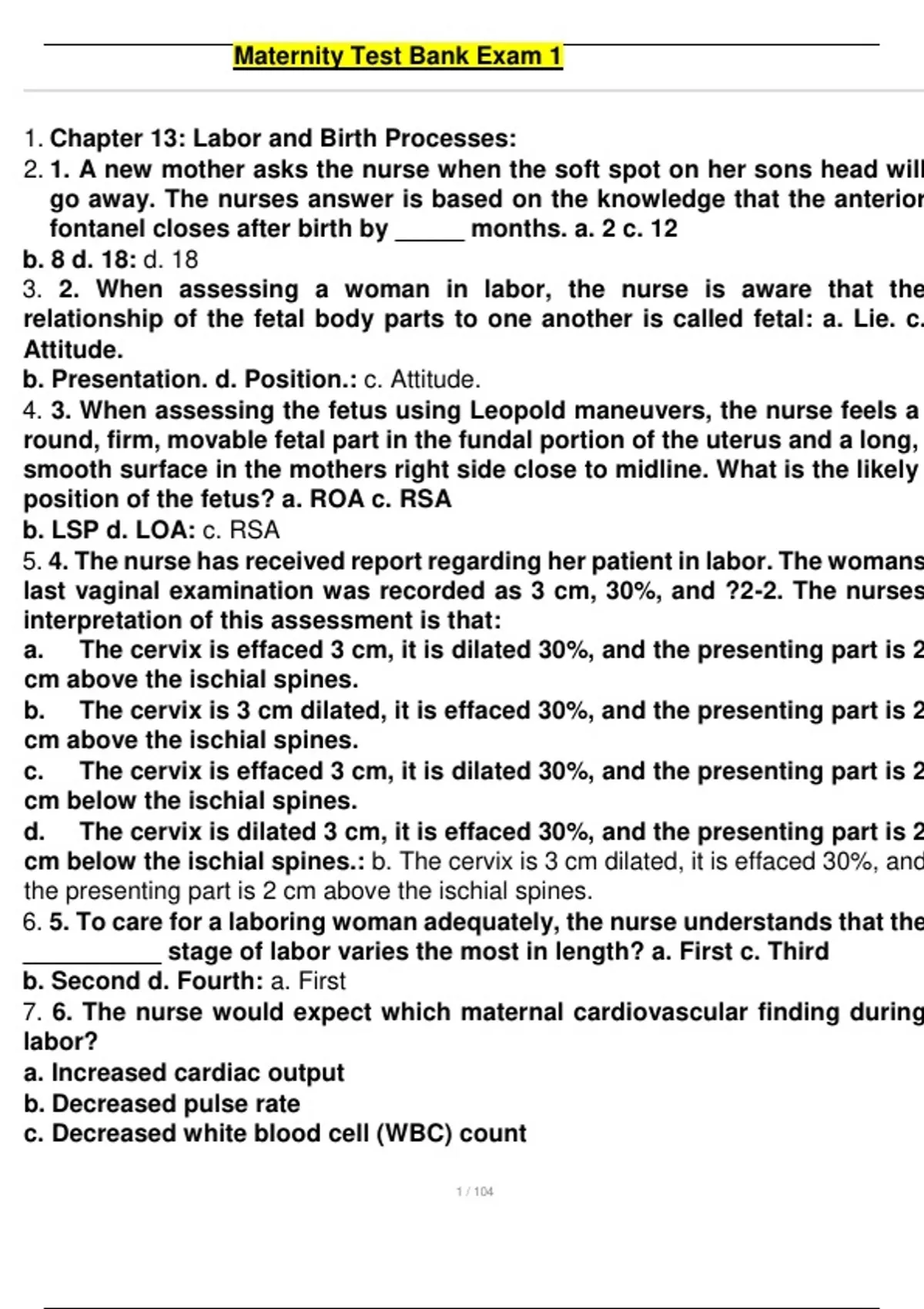 5. 4. The nurse has received report regarding her patient in labor. The womans