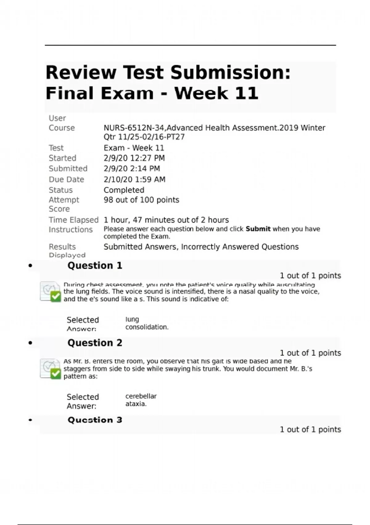 NURS-6512N-34,Advanced Health Assessment Final Exam - Week 11