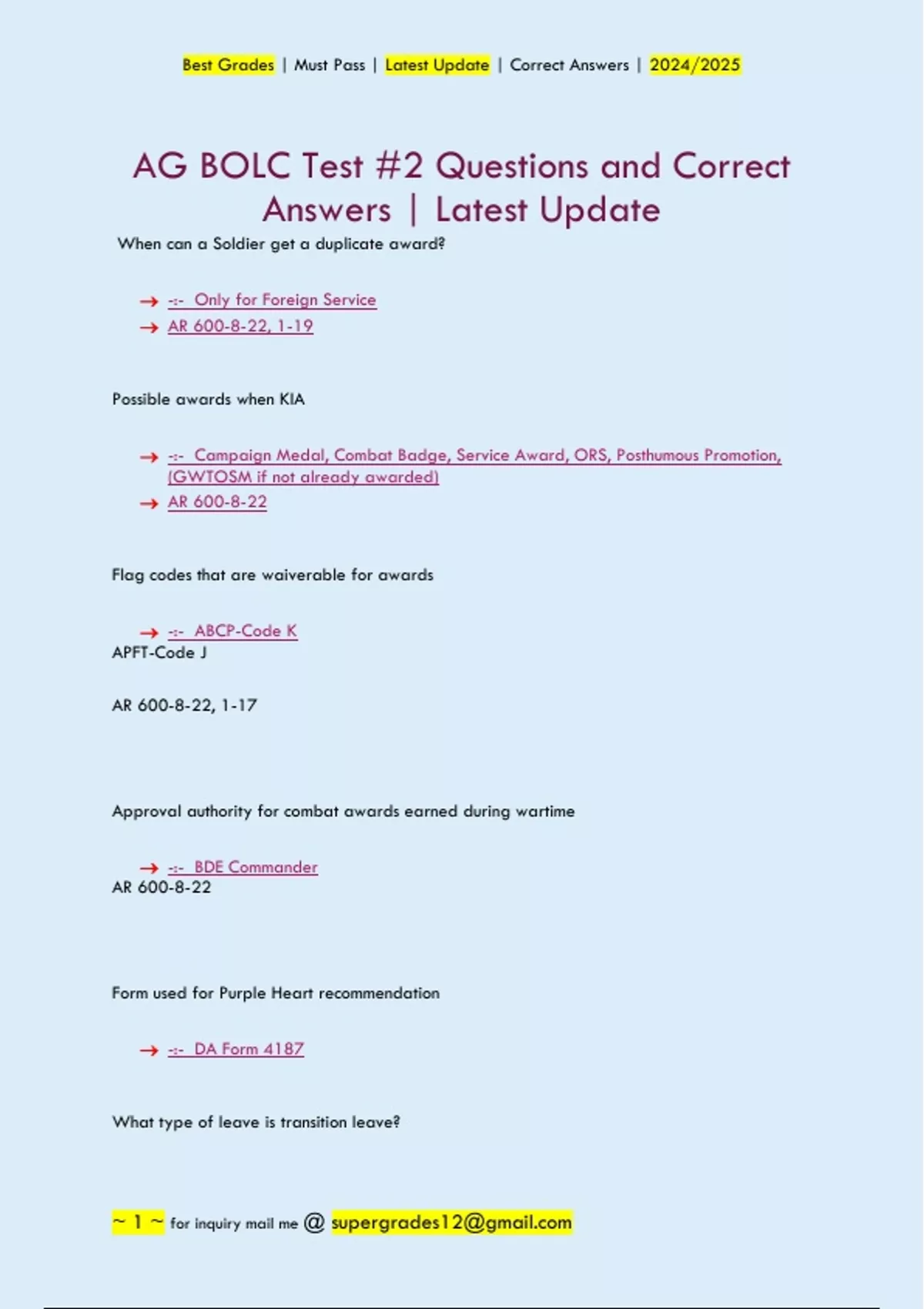 , Best Grades | Must Pass | Latest Update | Correct Answers | 2024/2025