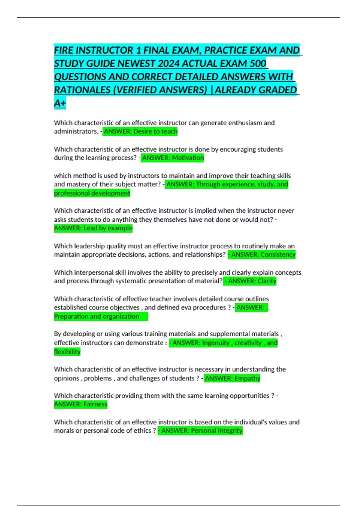 effective instructors can demonstrate : - ANSWER: Ingenuity , creativity , and