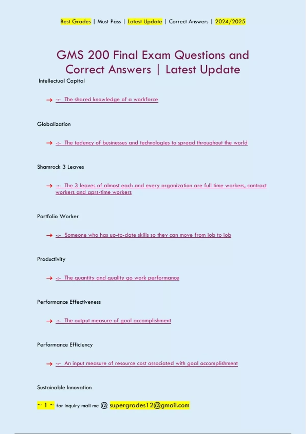 , Best Grades | Must Pass | Latest Update | Correct Answers | 2024/2025