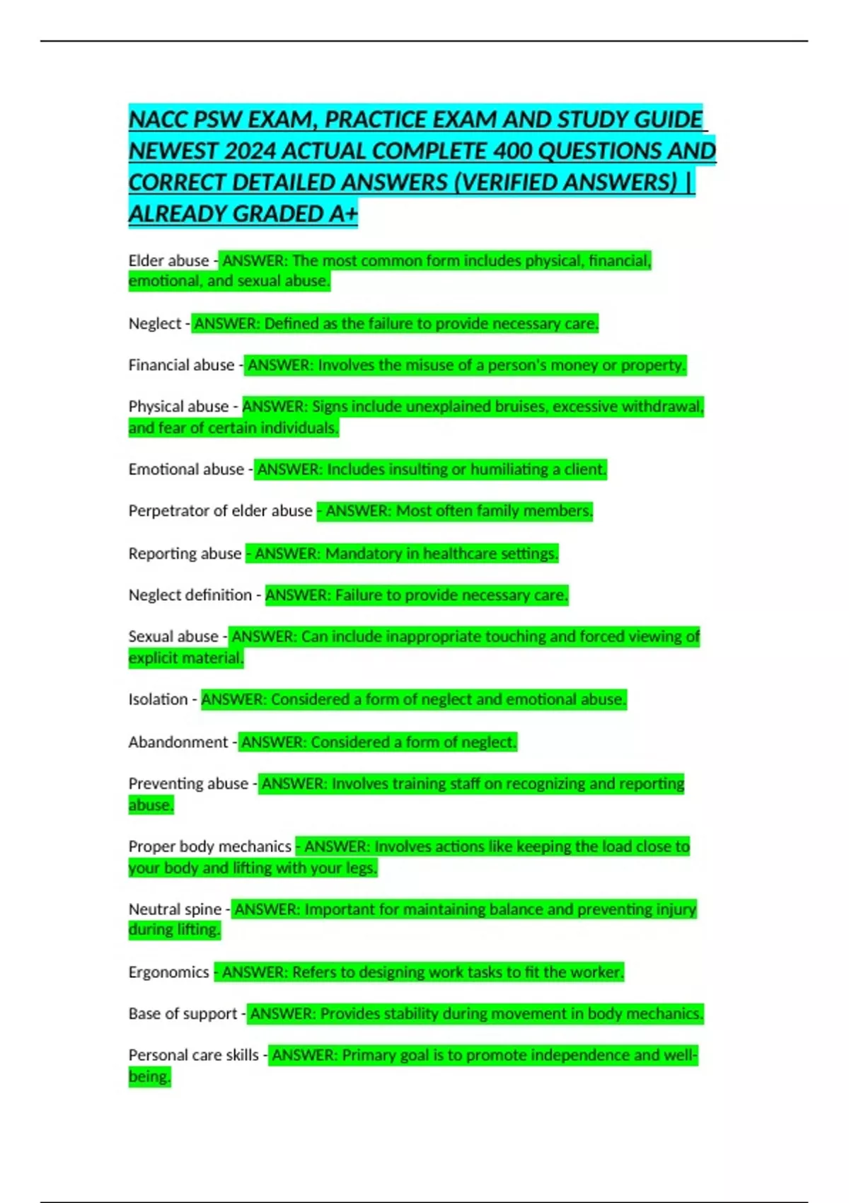 NEWEST 2024 ACTUAL COMPLETE 400 QUESTIONS AND