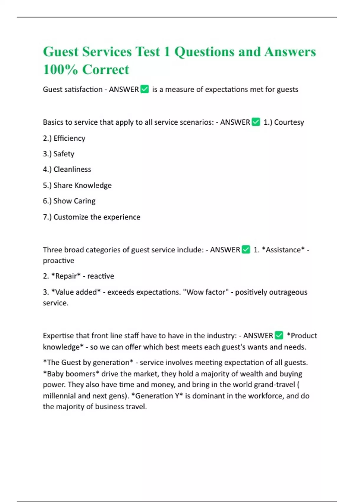 Guest Services Test 1 Questions and Answers
