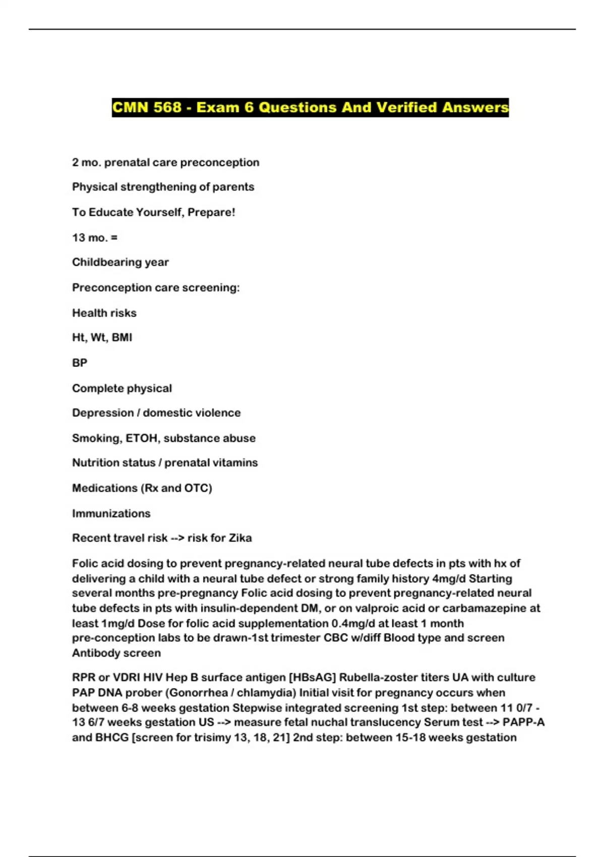 PAP DNA prober (Gonorrhea / chlamydia) Initial visit for pregnancy occurs when